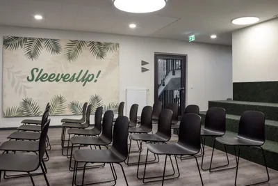 Hier mietest du den perfekten Raum für dein Event. Bis zu 50 Personen finden Platz in unserem Eventspace am Standort Darmstadt Hauptbahnhof. Die flexible Bestuhlung und die Podesttreppe sorgen für große Auftritte. Die Fatboys laden zum entspannten Zurücklehnen ein. Ob Workshop, Keynote oder Networking-Event – Beamer an, Tischkicker bereit und Bühne frei für dich!