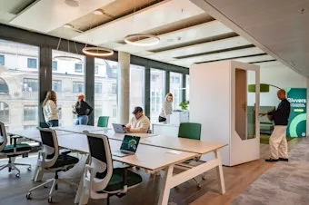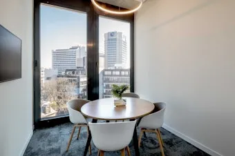Willkommen im perfekten Arbeitsflow. Im Kreisler Building zentral in der Frankfurter Innenstadt findest du auf 2.297 qm inspirierende Workspaces bei Rivvers, die Fokus und Kreativität verbinden. Die großzügigen, begrünten Terrassen bieten Open-Air-Arbeitsplätze mit spektakulärem Blick auf die City.